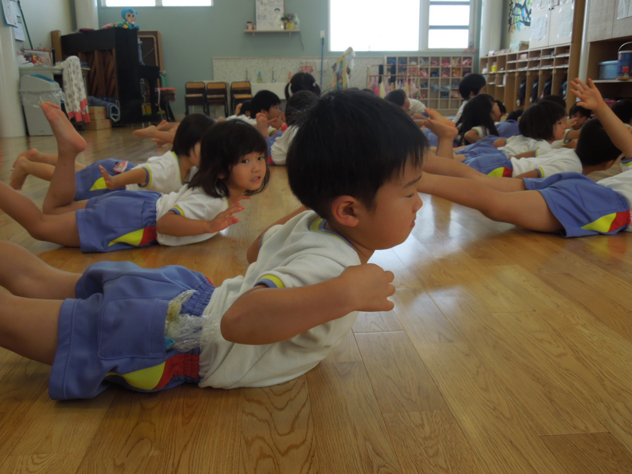 大好きなアンパンマンポーズ!!はじめはた頃は、あまりあがらなかったけれど、今ではこんなに!すごいでしょ☆