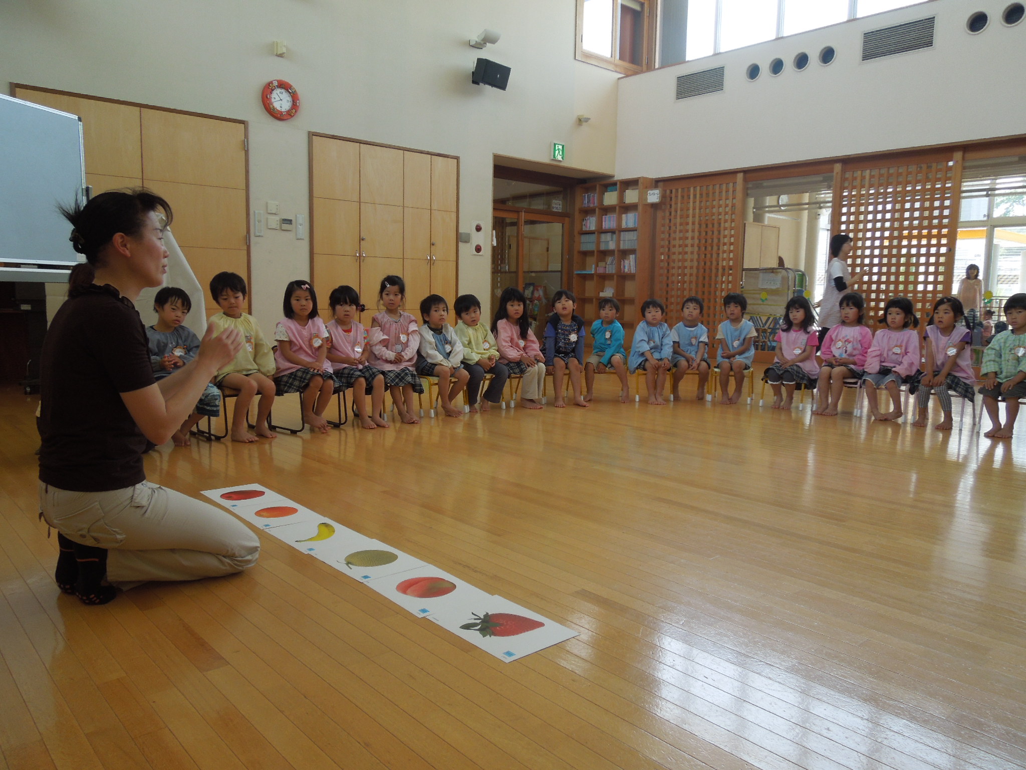 今年度も、講師の岩崎先生と楽しくECC教室が始まっています。体の色々な箇所を英語で話してタッチしたり、リズムに合わせて自分の名前も言えるようになりました。色の名前や果物の名前など、新しい英単語も元気いっぱい答えることができています。