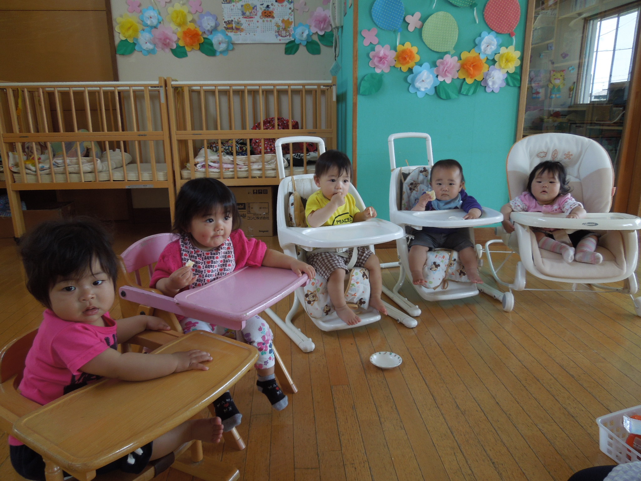 つくしぐみの、おやつタイム!でも、あらあら・・・おやつはあっという間に食べちゃいました(^o^)