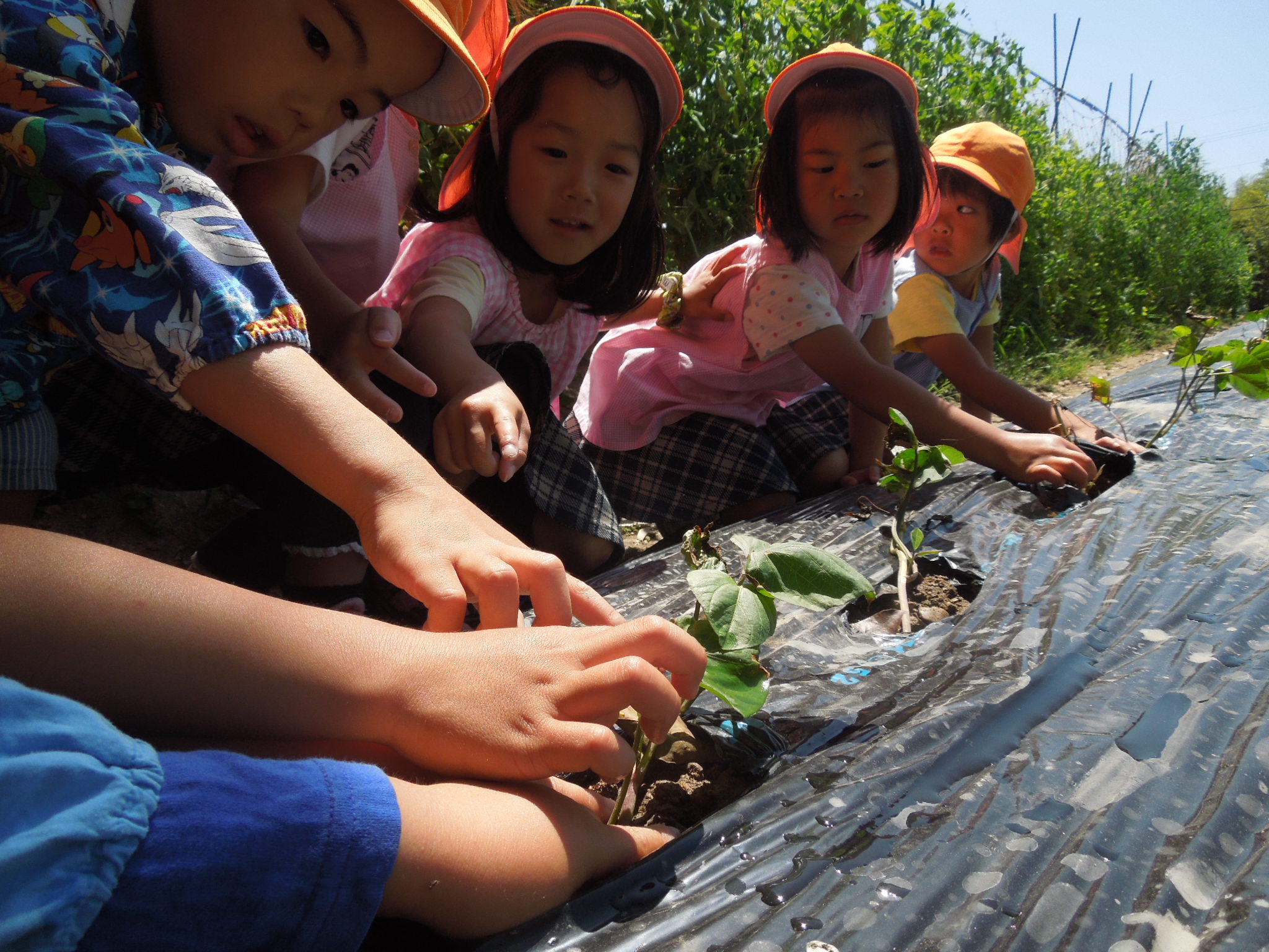 先日植えたさつま芋の様子を見に、おでかけしました。400本のつるは、順調に育ち始めていて、子どもたちは大喜び!