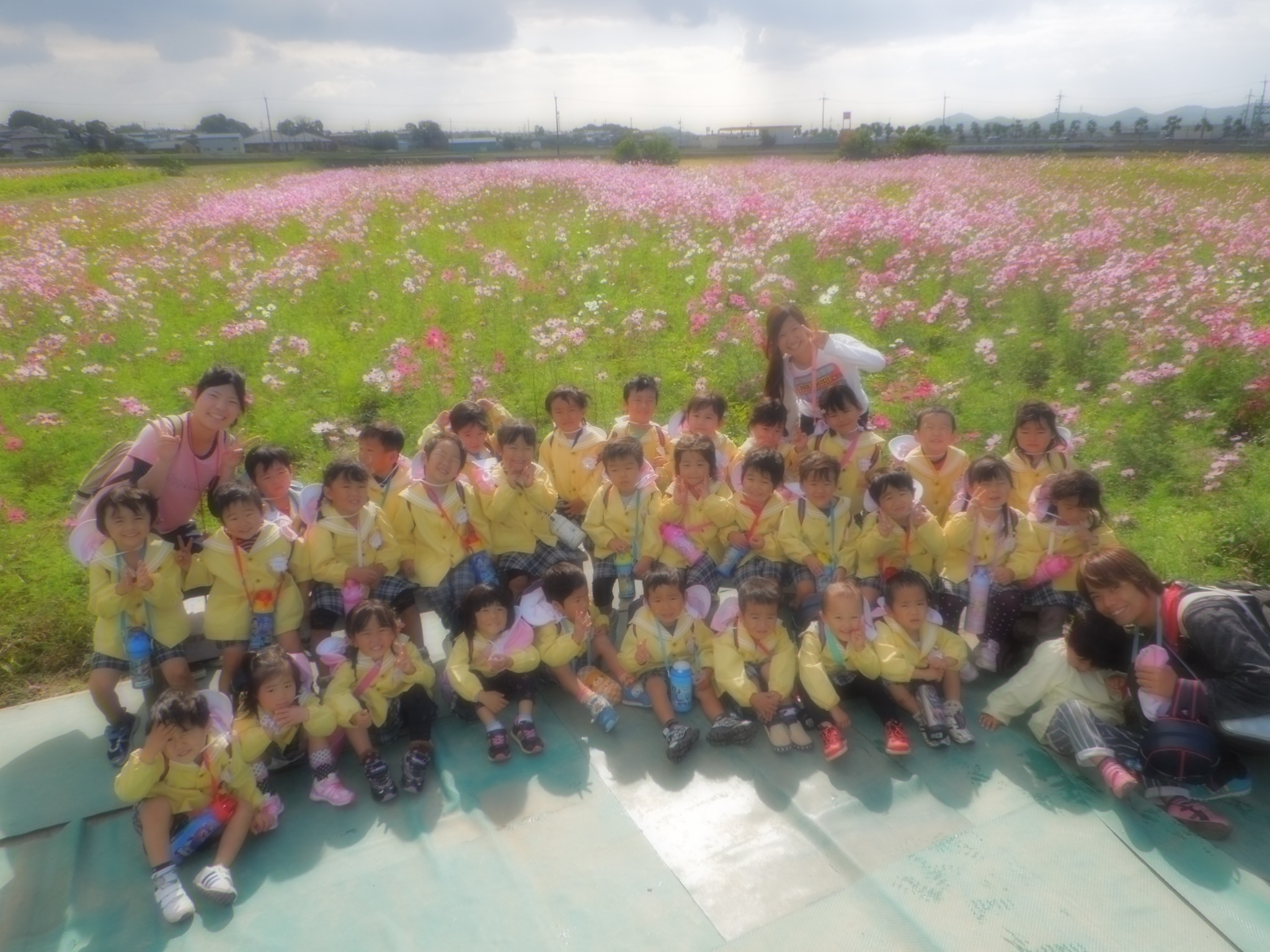 もも・たんぽぽぐの遠足で、ひまわり公園に行きました。コスモス畑がとってもきれいな時期でした。広い芝生の上を思いっきり走り回ったり、いろいろな遊具で遊んだりと満喫しました。ももぐみは、少し足をのばして、共進牧場まで歩いて出かけました。たくさんの牛たちに驚く子どもたちでした。保育園で飲む牛乳は、共進牧場の牛乳です!「牛さん、いつもありがとう♪」