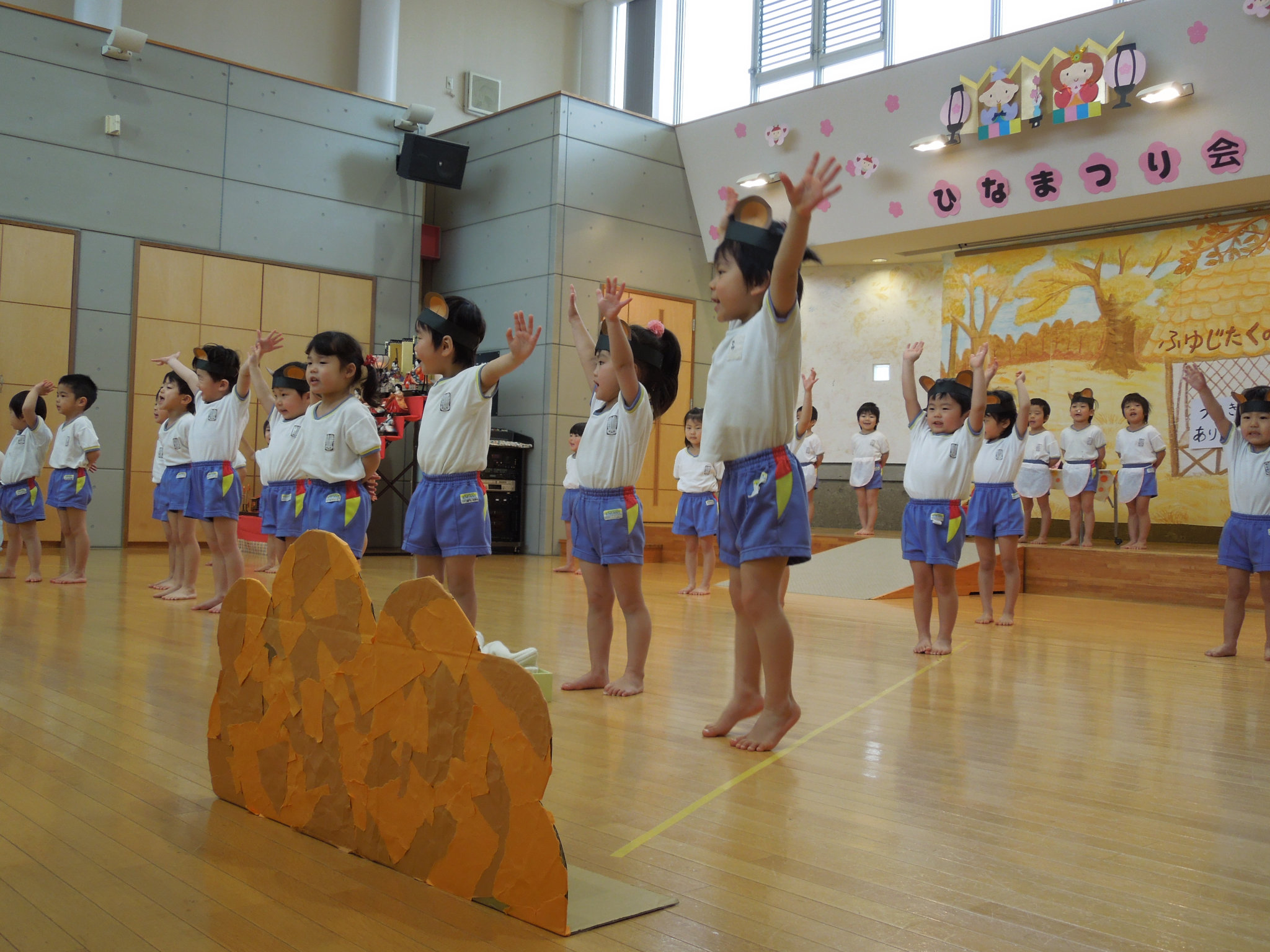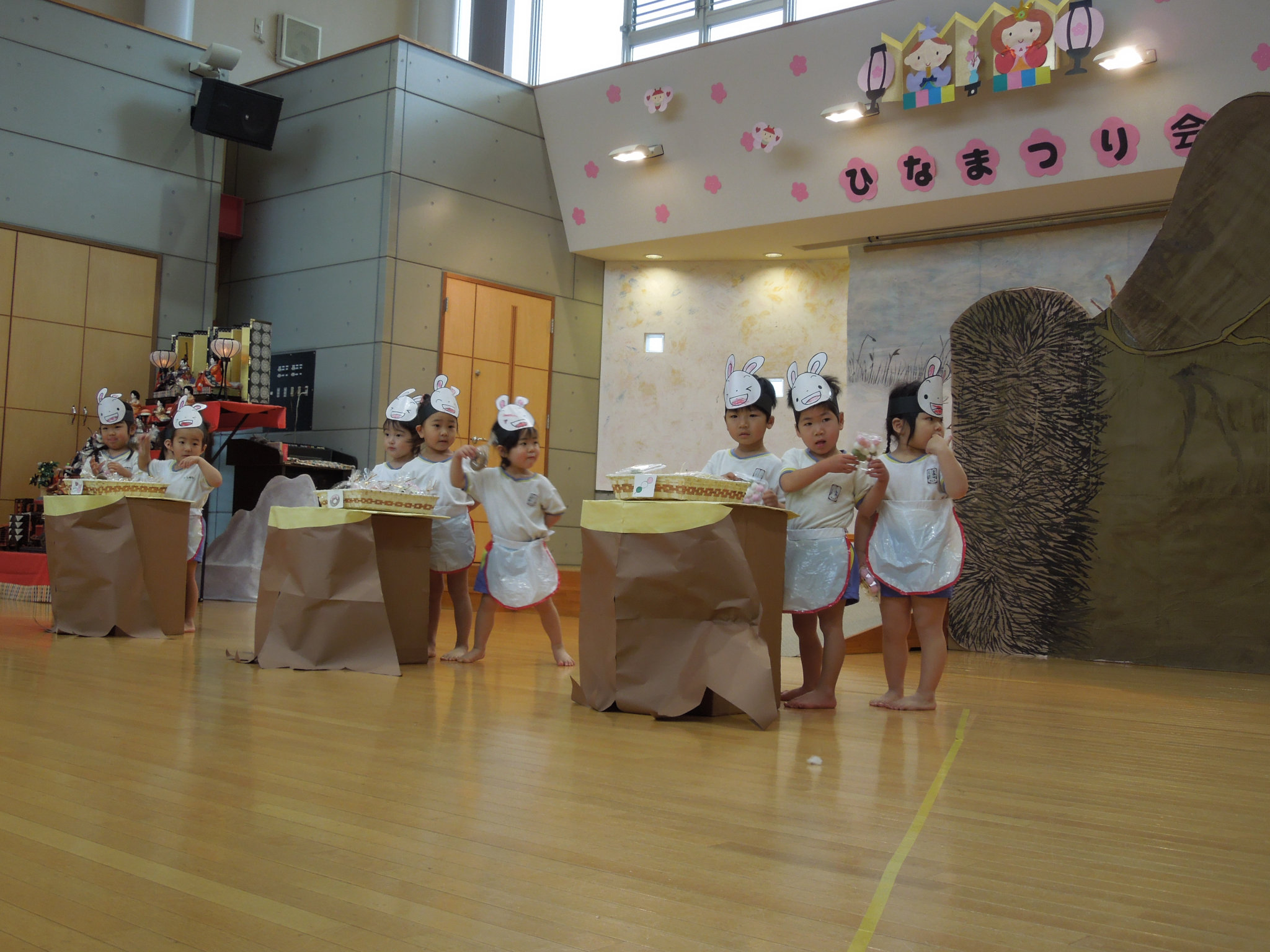 ひなまつり会(生活発表会)を行いました。一年間の集大成として劇(表現)遊びを発表しました。たくさんのお家の方を前に、少し緊張気味の子どもたちでしたが、みんな大きな声で歌ったり、セリフを言ったりと、成長した姿を見て頂くことができました。