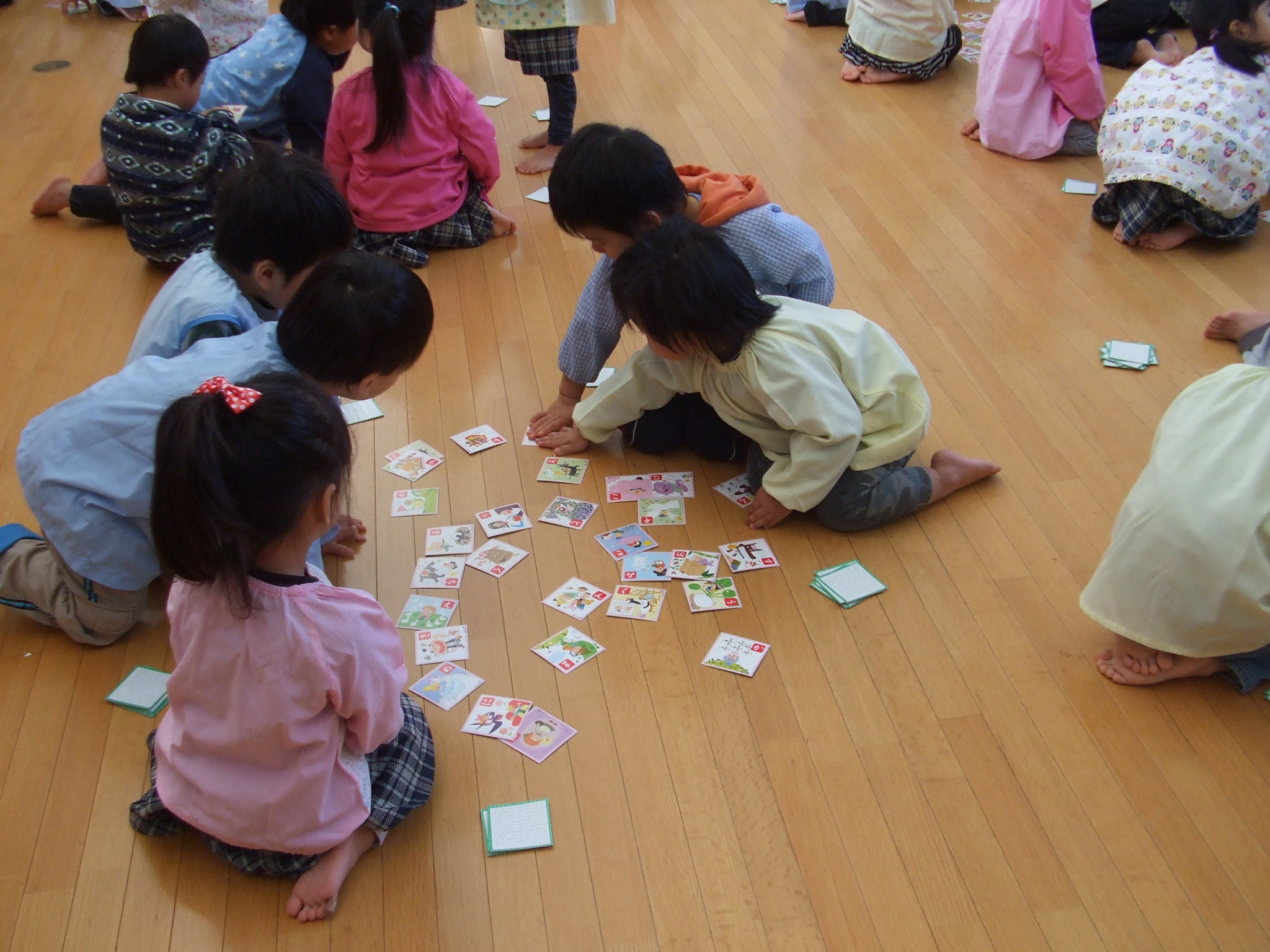 新年最初のぶどうの日は、カルタ取り大会をしました。「お正月に、お家の一と一緒にかるたあそびをしたよ」と、教えてくれた子どもたち。たくさん取るぞっ!やる気満々です。『はいっ』『はいっ』と大きな声でカルタを取ることができましたよ。