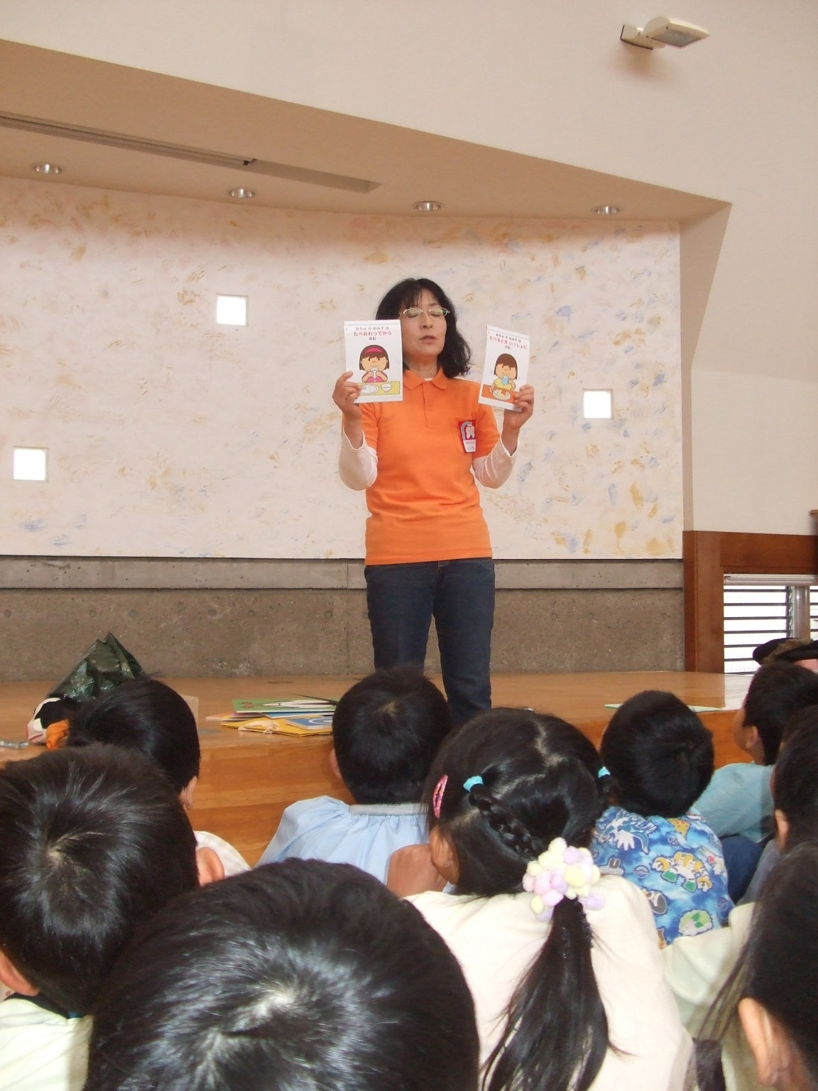 歯科衛生士の方による「歯みがき教室」がありました。ひまわりぐみの子どもたちが参加しました。大人の歯に生え替わりつつある子どもたち、話を聞く顔は真剣です。歯の磨き方を教えて頂いたり、虫歯にならないためのお約束もしました。