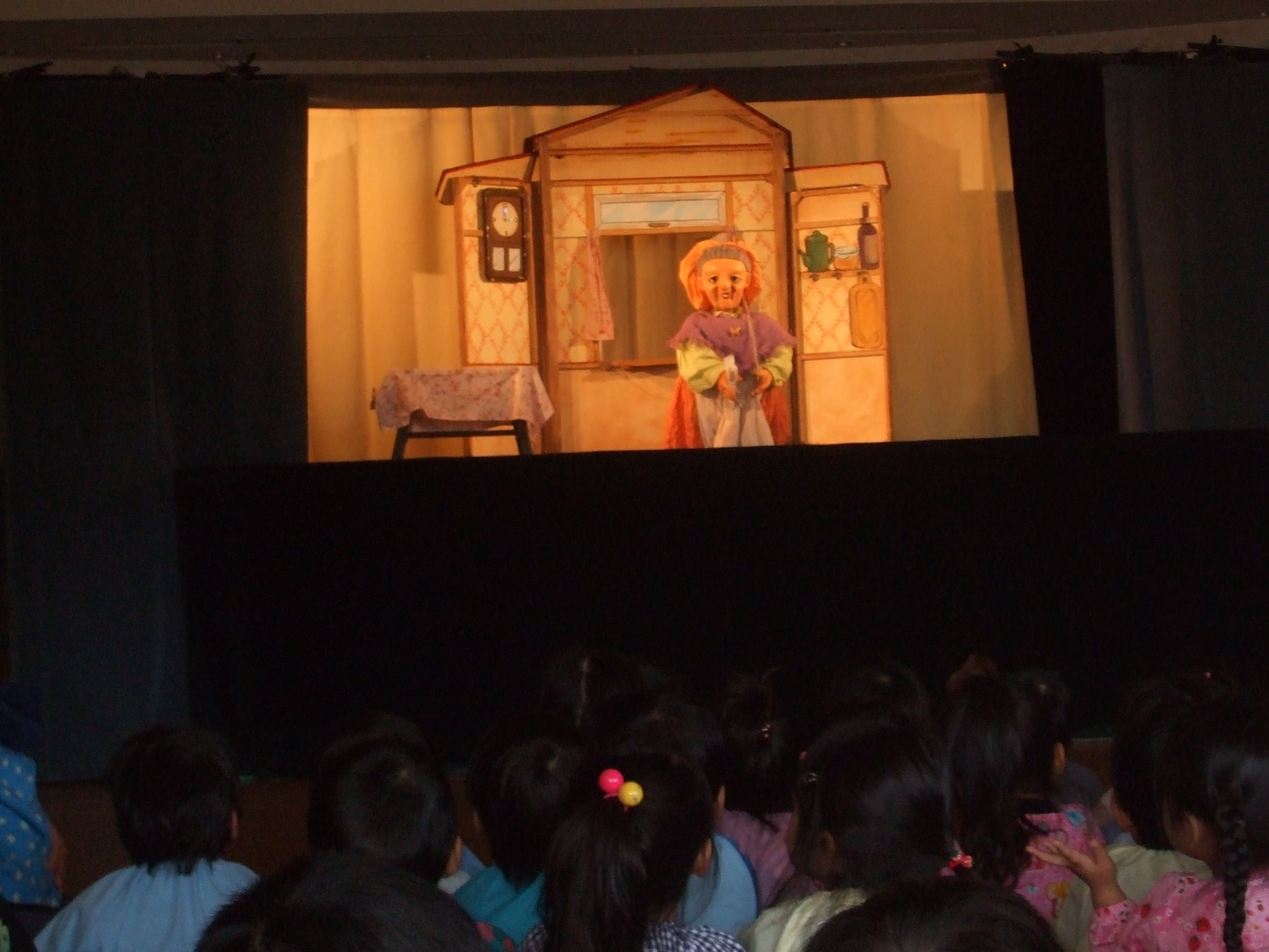 えびすっこひろばのお友だちと一緒に、劇団「ちろりん」の皆さんによる人形劇を観劇しました。お話は『コロコロパン』です。パンがコロコロ転がっていく様子に大喜びの子どもたちでした。