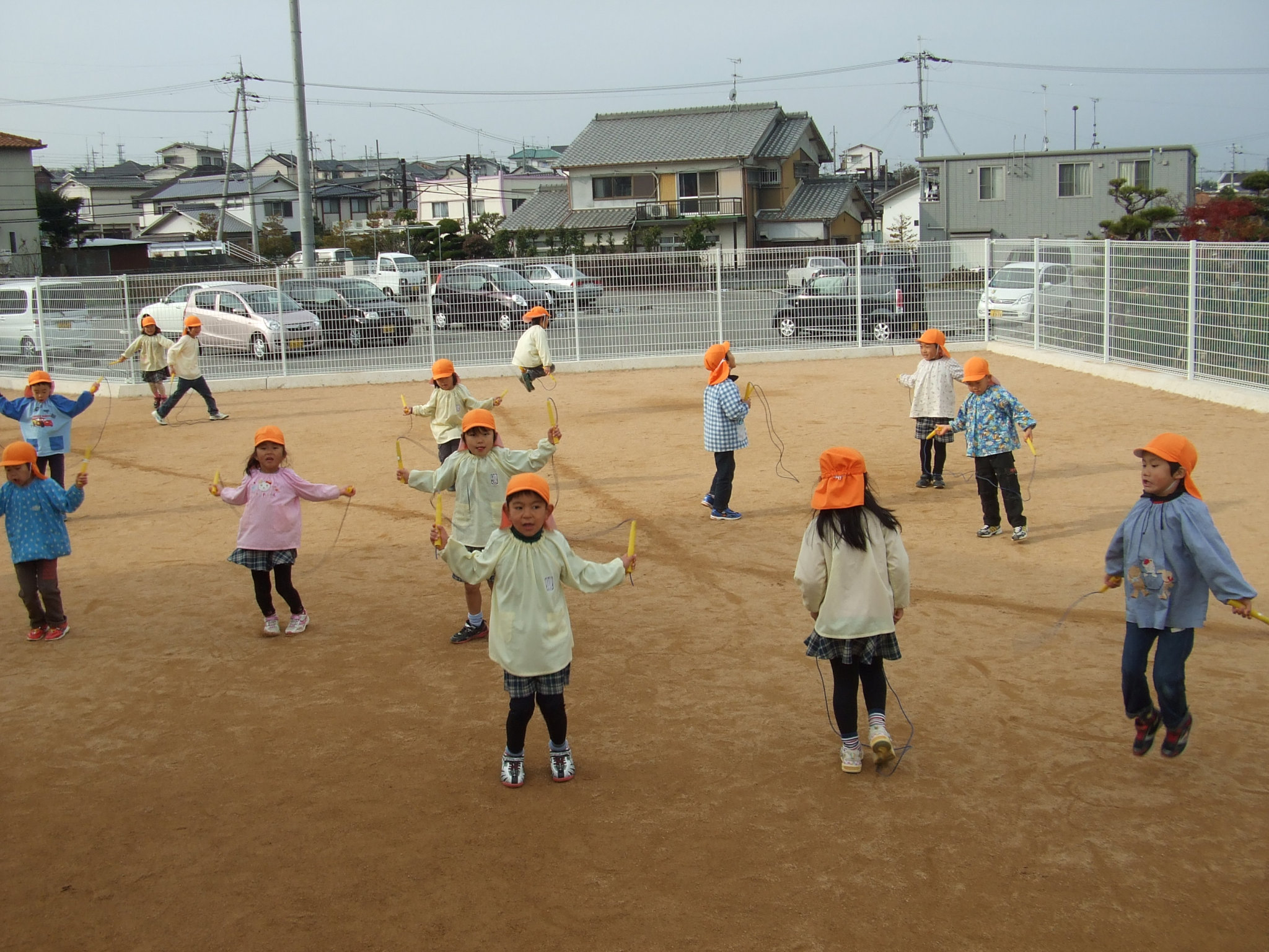 寒さに負けず、なわとびにチャレンジ中の子どもたち。がんばりカードにはたくさん“できたよハンコ”が押されています。早くも100回以上跳べる子が4〜5人いて、みんな意欲に満ちあふれ取り組んでいます。なわ跳びを飛ぶと体もぽかぽか温まりますね。