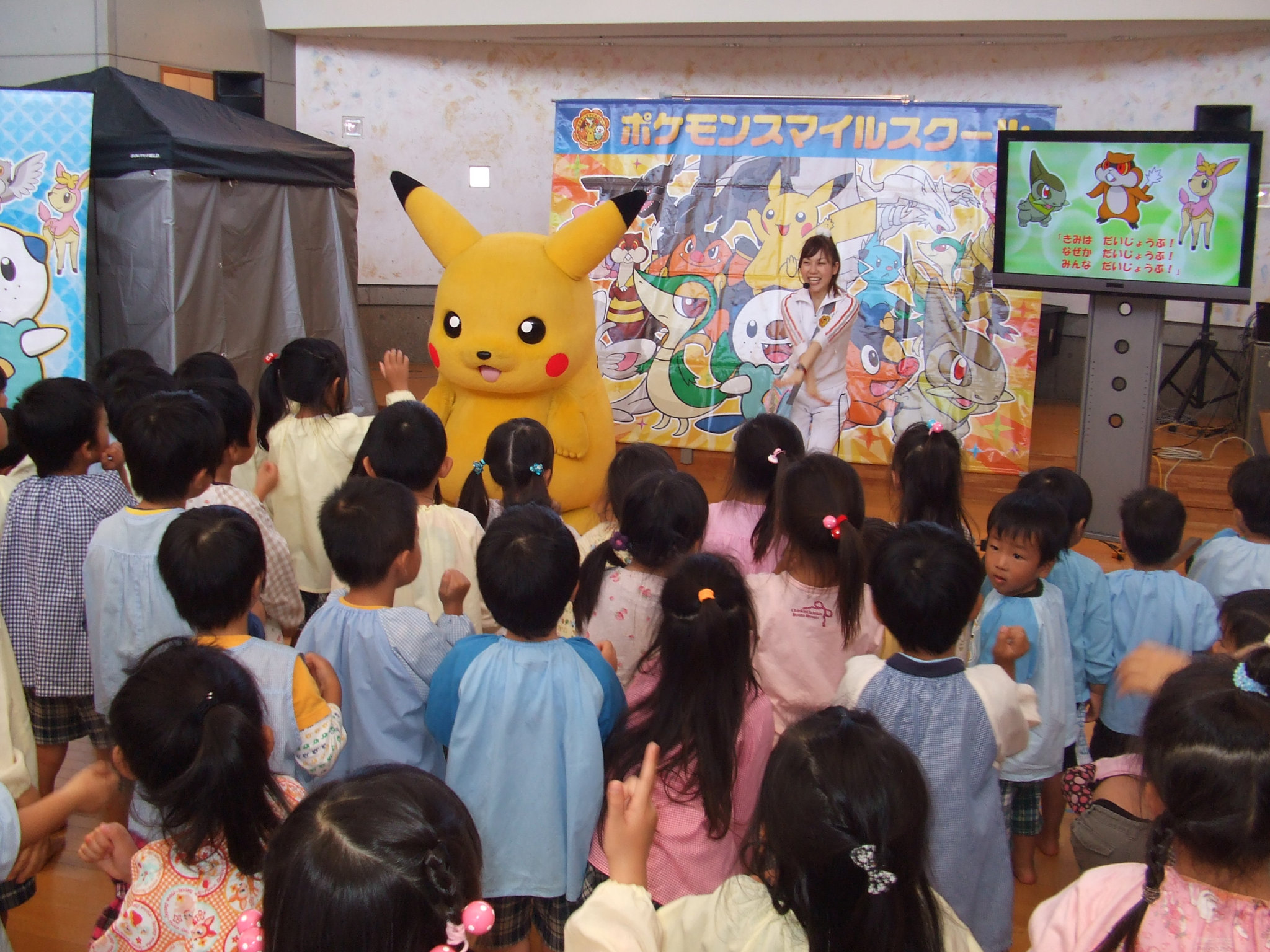 ピカチューが保育園にやって来ました。一緒にダンスをしたりゲームをしたり、楽しい時間を過ごしました。