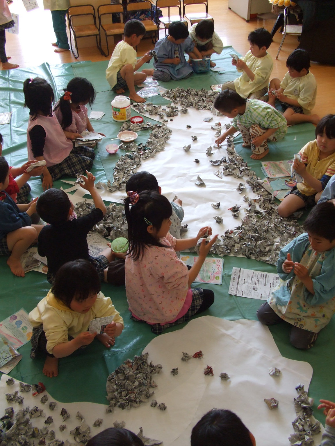 恐竜が大好きなひまわりぐみの子どもたち。遠足で見た恐竜をみんなで力を合わせて作っています。ボンドに苦戦しながら頑張っています!5月には、恐竜でいっぱいのお部屋になるのが楽しみですね♪