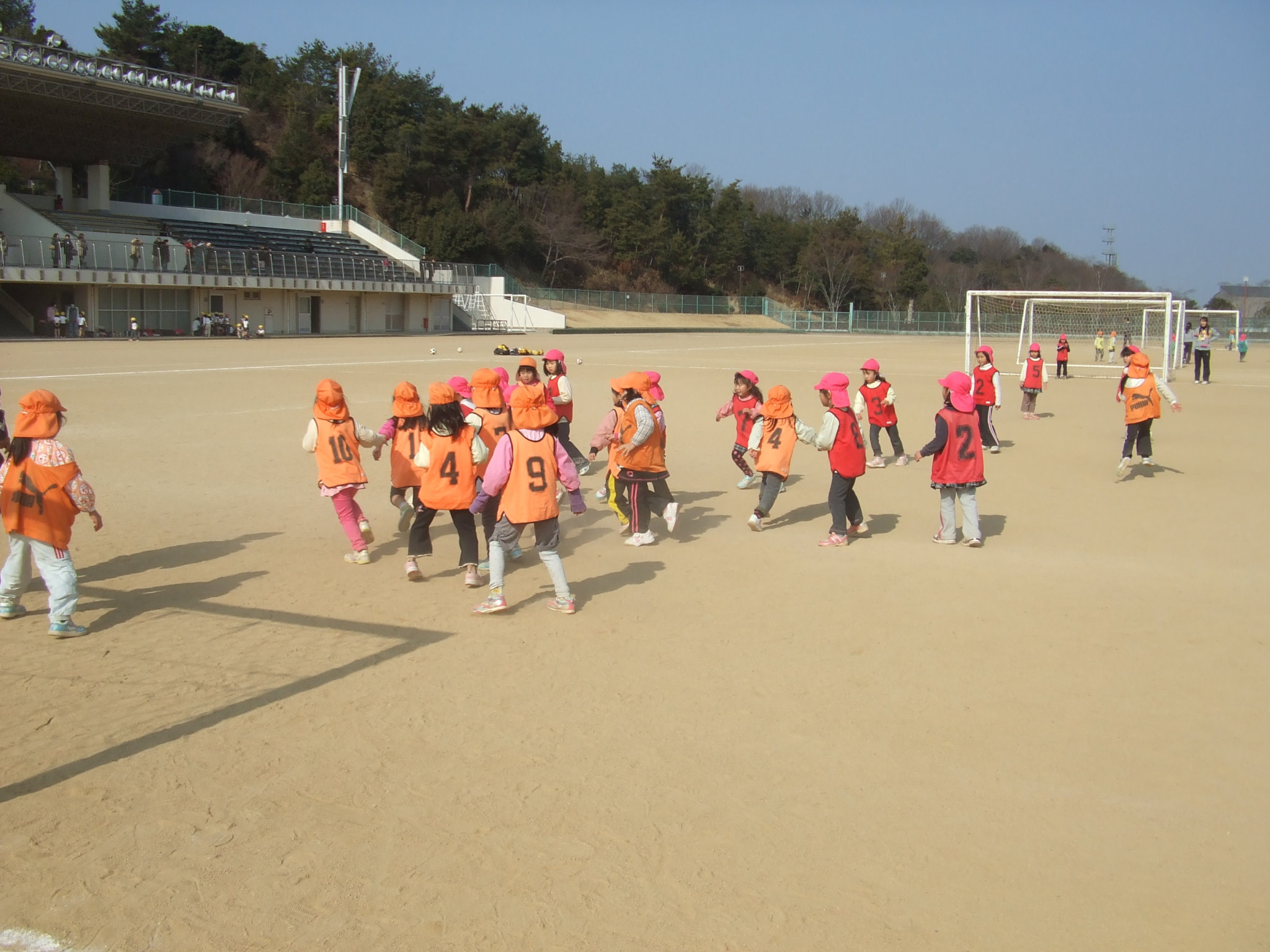 ばら・ひまわりの子どもたちが、あけぼの保育園のお友だちと一緒にサッカー交流会を行いました。 サッカー大好きの子どもたち。楽しみにしていたサッカー交流会の日がやってきました。三木山総合運動公園の大きなグラウンドと大きなゴールに少し驚いた様子の子どもたちでしたが、友だちと一緒に、ボールに向かってコート内を一生懸命走りました。 わんぱくカップ(男の子リーグ)は、ひまわりぐみチームが優勝! なでしこカップ(女の子リーグ)は、あけぼの保育園チームが優勝しました。みんな本当によく頑張ったね。 あけぼの保育園のお友だち、ありがとう。小学校にいってもよろしくね♪