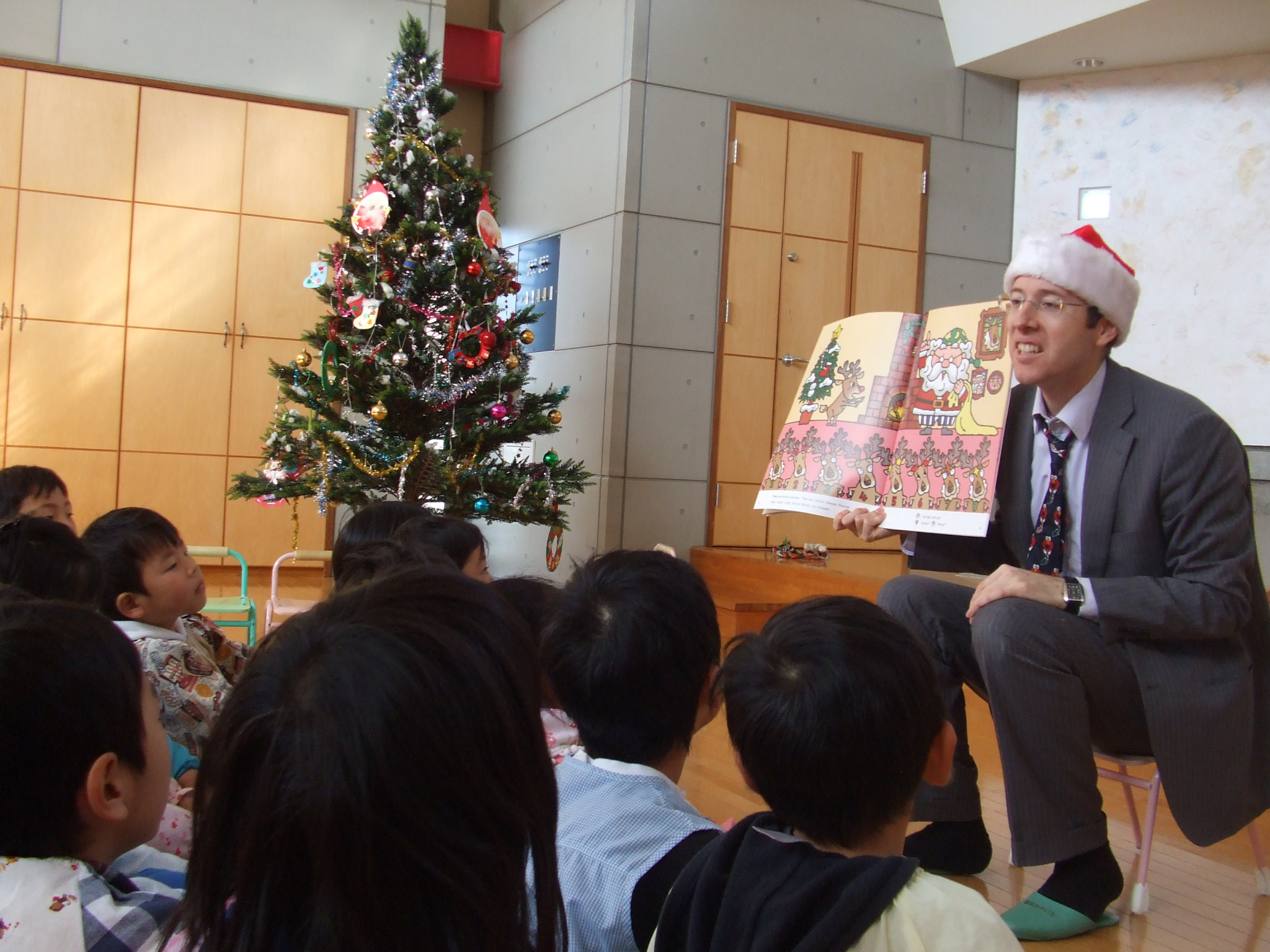 今日のECCはクリスマス!! Mr.クリスと一緒に楽しく遊びました。さて、トナカイは英語で何というか知っていますか?