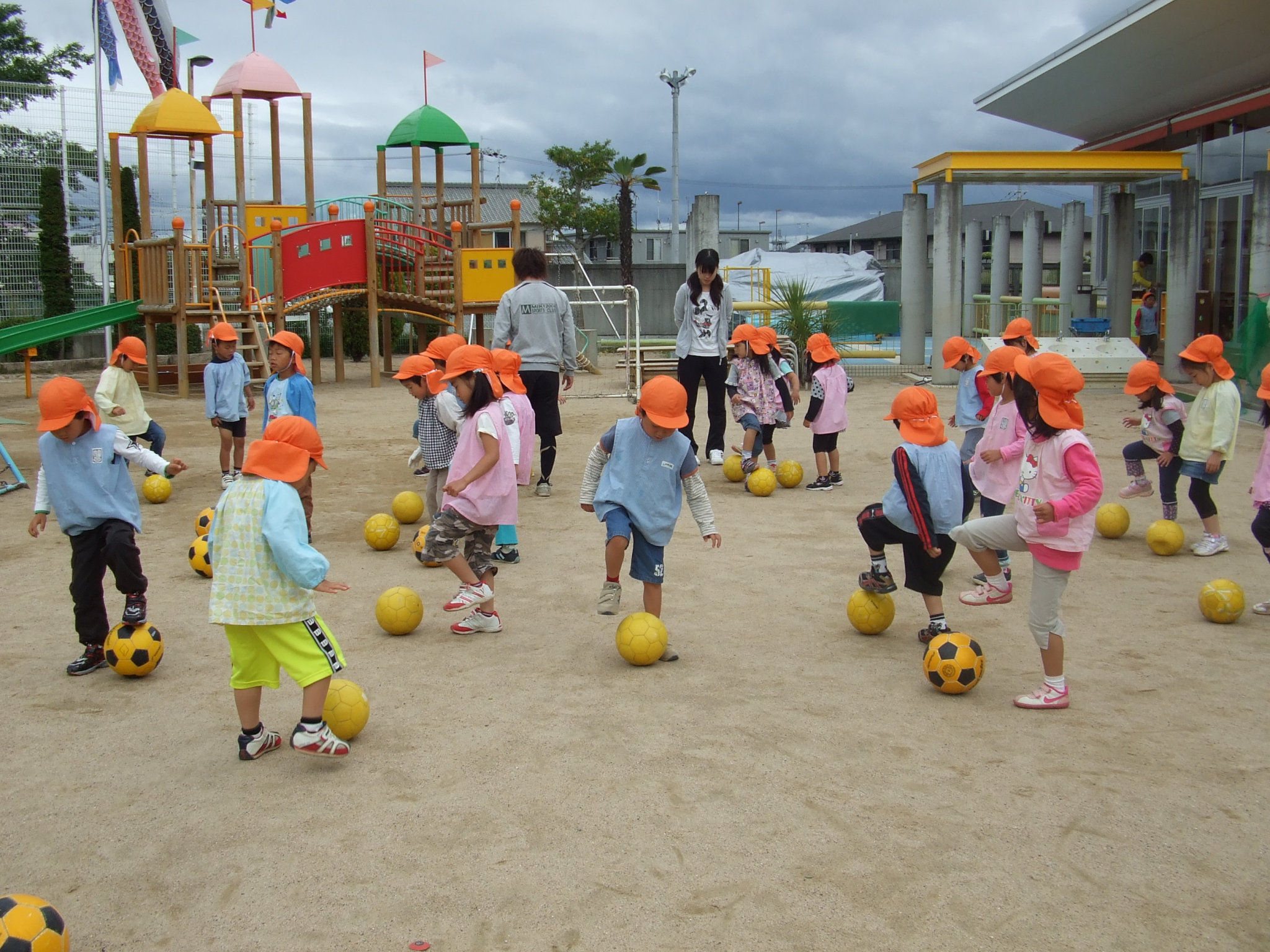 延期になっていたサッカー教室がありました。昨年の5歳児さんの様子を見て、あこがれていた子どもたち!今日は張り切って参加しました。まずはボールに慣れる所からスタートしました。