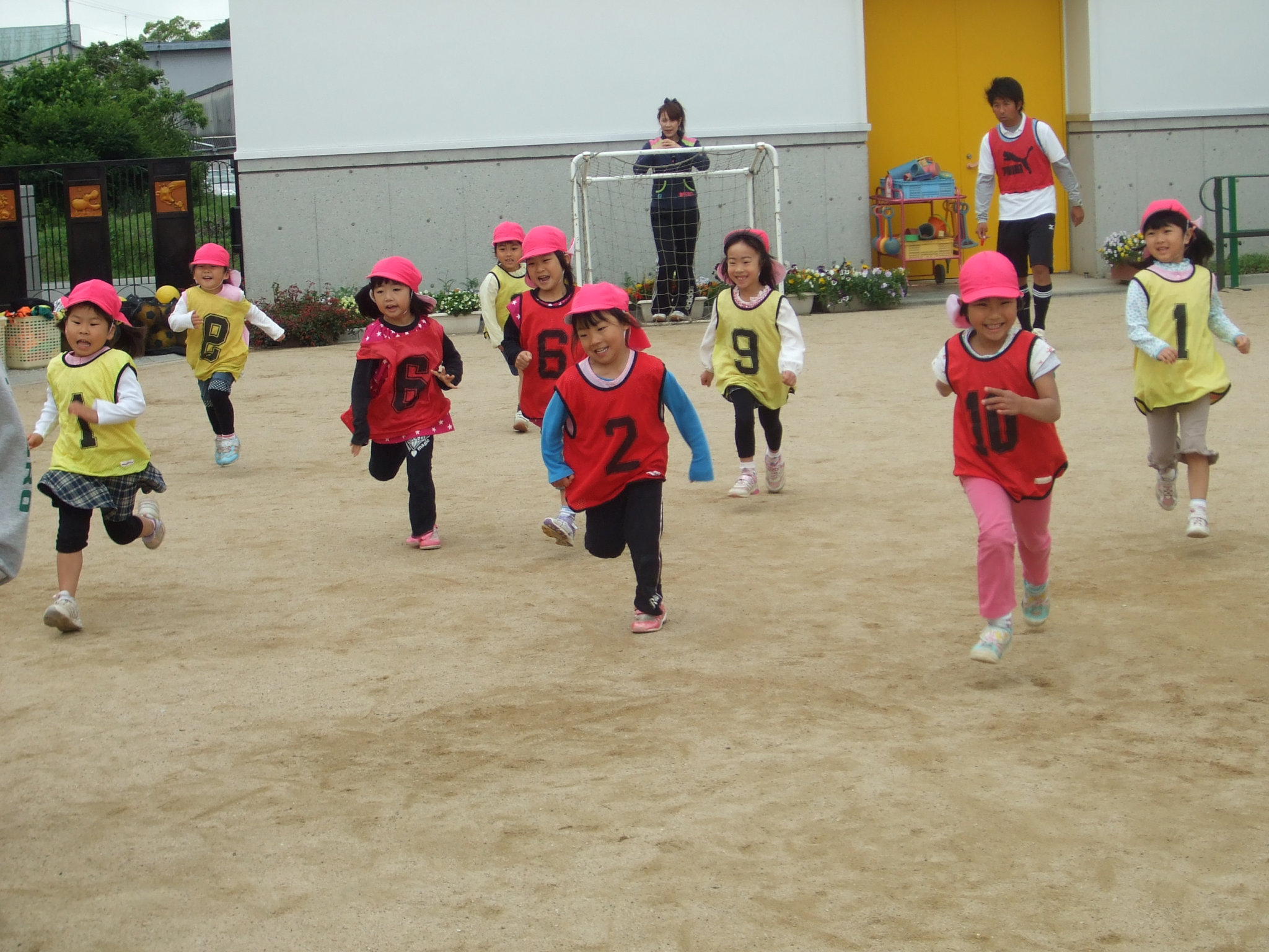 ボールに慣れた後は、5〜7人一チームのミニゲームをしました。「キーパーはだれにする?」「パスしてな!」と早くもやる気満々♪なかなかいい動きをしていました。次回が楽しみです。