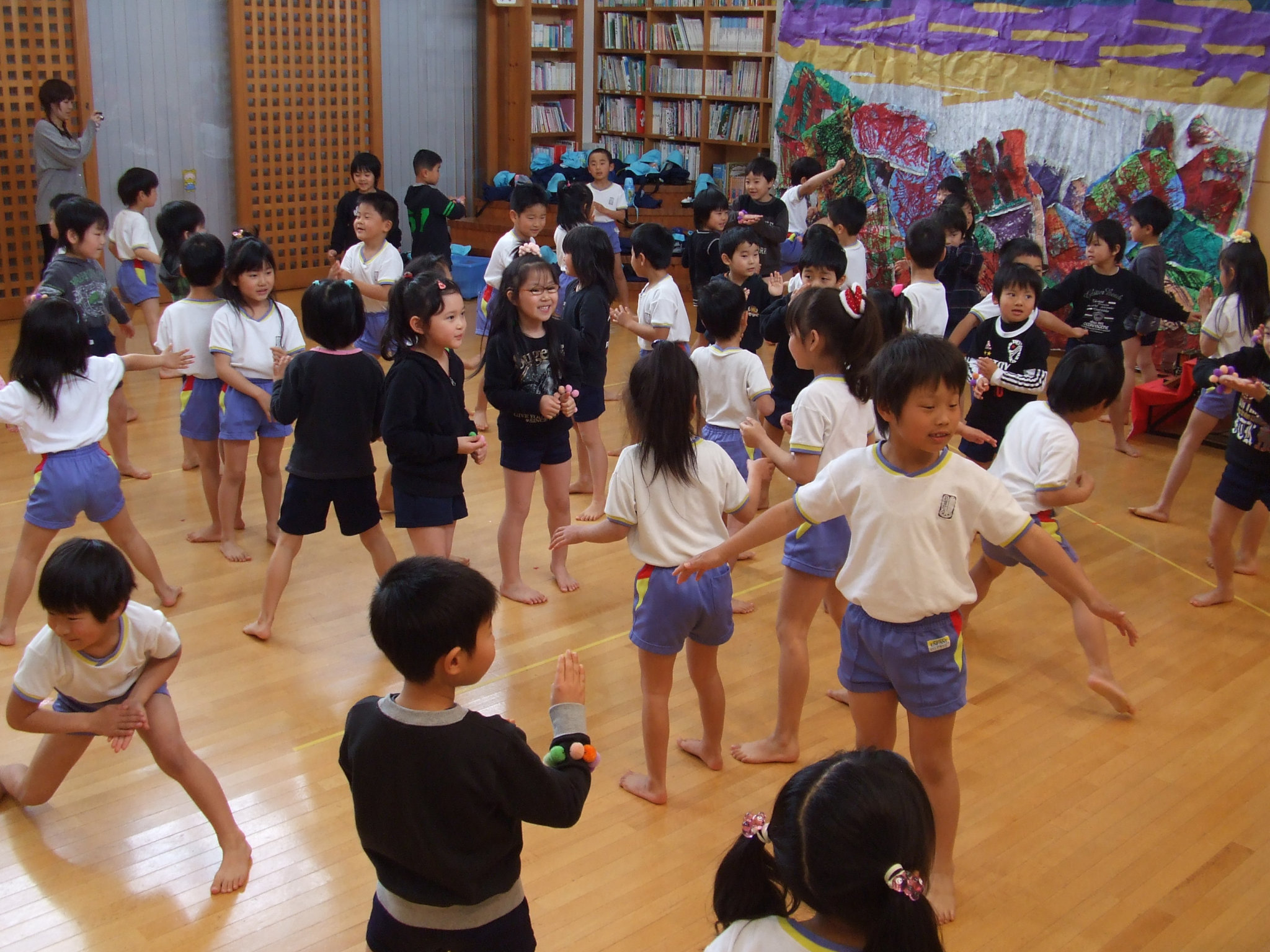 神和保育園の5歳児そらぐみのお友だちが、えびす保育園に遊びにやってきました。お互いに、生活発表会で取り組んだ「劇」を発表し合いましたが、どちらも真剣なまなざしで見入っていました。その後は、リズム遊び・ふれあい遊びをして遊びました。同じ小学校に入学するお友だちを見つけたり、気になるお友だちに声をかけたり、すぐに仲良くなりましたね。神和保育園そらぐみのみなさん、ありがとうございました。また、遊ぼうね!!