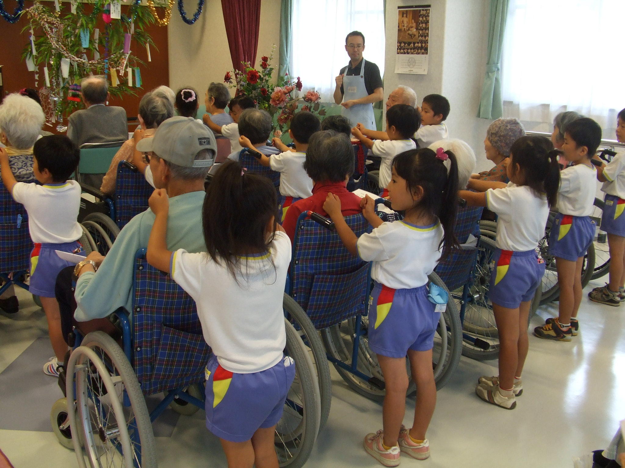 ひまわりぐみの子どもたちが、カトレア三木のみなさんに「七夕マリンバコンサート」のご招待を頂きました。あまり聴き慣れないマリンバの音色に耳を傾ける子どもたち。知っている曲が出てくると大きな声で歌っていました。みせて頂いたお礼に、歌や手遊びを披露しました。おじいさん・おばあさんと一緒に歌をうたったり、遊んだりとても楽しい時間を過ごしました。肩たたきも上手にしていましたよ。カトレア三木のみなさんありがとうございました。