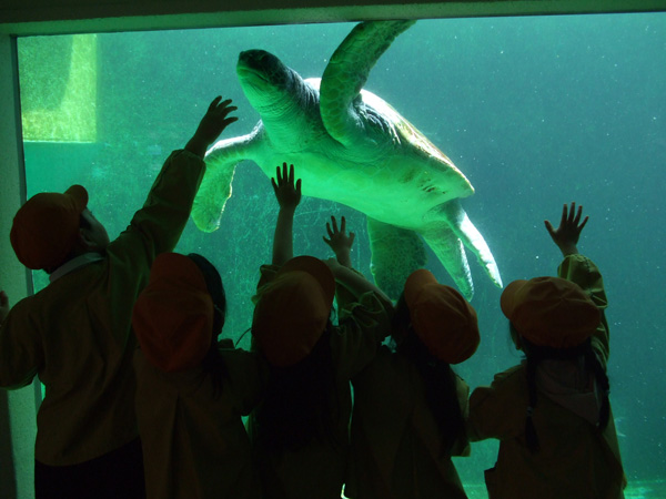 ひまわり・すみれぐみの子どもたちが、大型バスに乗って「お別れ遠足」にでかけました。姫路市立水族館では、大きな“うみがめ”が優雅に泳ぐ姿に感動したり、タッチプールで“ひとで”や“なまこ”に触れて大騒ぎをしたりと楽しみました。姫路城をバックにおいしいお弁当食べ、午後は姫路市立動物園で過ごしました。とっても楽しい一日で、楽しい思い出がたくさんできました。
