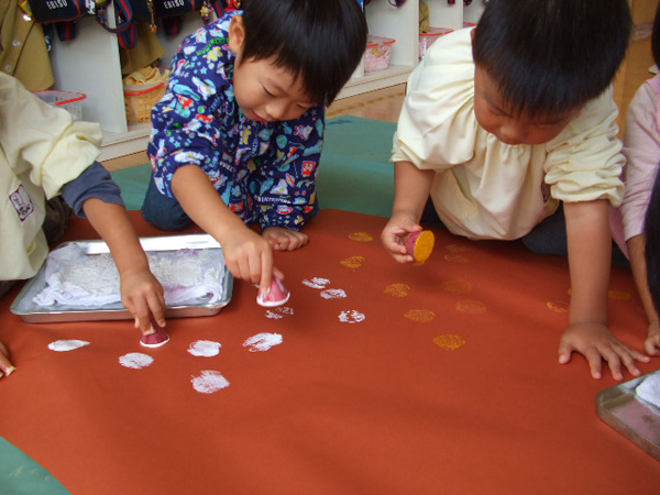 芋版作りに挑戦しました。芋を掘る姿は真剣そのもの!!とっても難しい作業でしたが、がんばりました。