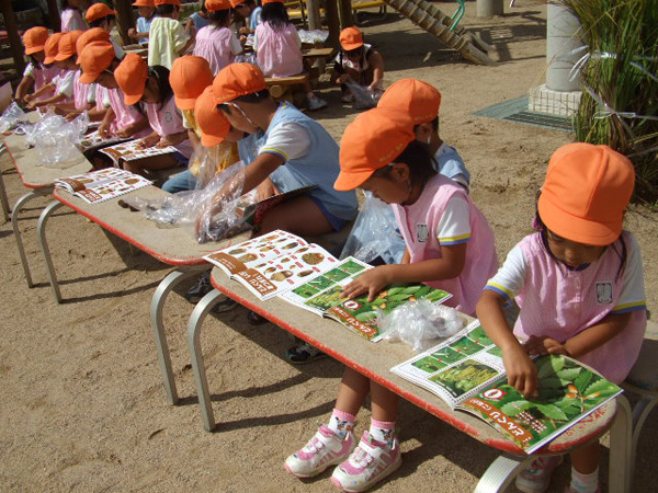 お散歩に行ってどんぐり拾いをしました。園に帰ってきてから図鑑を出して、拾ったどんぐりに種類や特徴を調べました。「マテバシイ」「スダジイ」「コナラ」「カシワ」・・・いろんな種類があります。みなさんどのぐらい知っていますか?