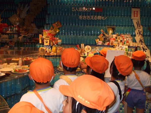 秋の遠足に出かけました。ひまわり・すみれぐみは午前中、人と自然の博物館にでかけ、自然の大切さを学びました。写真は「5人家族の一週間分のごみ」を見ている様子です。いろいろな展示物に真剣なまなざしを向けていました。自然破壊や地球温暖化について少し理解した様子の子どもたちでした。
