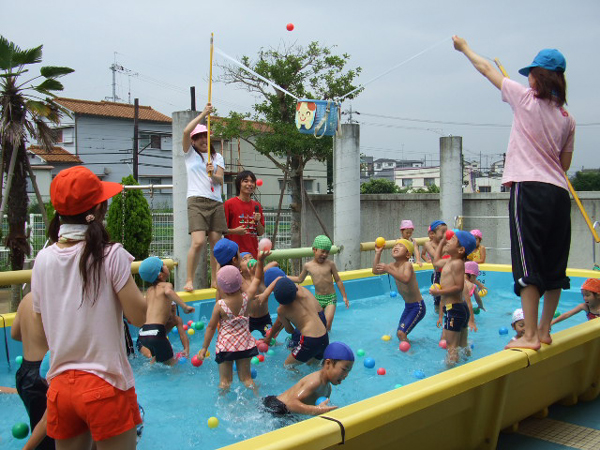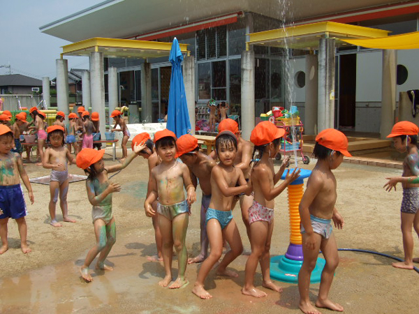 毎日暑い日が続いていますが、子どもたちは大はしゃぎでプール遊び・水遊びを楽しんでいます。冷たい水に「気持ちいい〜!」という声も聞かれます。