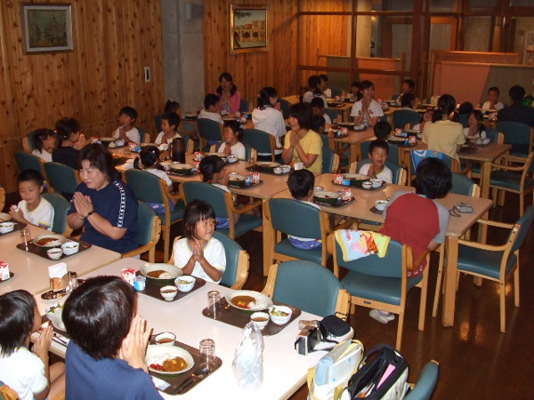 夕食・朝食はみんな揃ってレストランでいただきました。みんな大きな口を開けて、おいしそうに食べていました。また、他のクラスの先生たちとも楽しくお話をしながら、笑い声の絶えない食卓となりました。