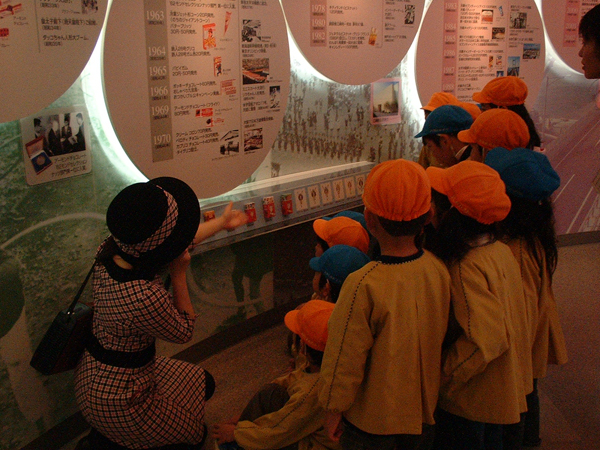お別れ遠足で、ひまわり・すみれぐみは「グリコピア」「農業公園」へ出かけました。グリコピアでは、グループに分かれ、お菓子の工場見学や、3Dシアターなど盛りだくさんの内容に、大満足の子どもたち、そして先生でした。ガイドのお姉さんのお話を真剣に聞き入る子どもたちです。