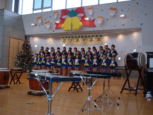 クリスマス会で、今まで一生懸命に取り組んできた、うたと合奏を披露しました。たくさんのお客さんを前にちょっぴり緊張気味の子どもたち。でもどのクラスも100%の力を出し切ってすばらしい演奏を聴かせてくれました。サンタさんも遊びに来てくれて、楽しい一日でしたね。