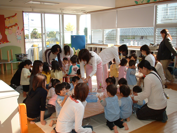 お家の方に、普段保育園でどのように過ごしているのか見て頂きました。楽器作りや、おもちゃ作りなどお家の方と一緒に楽しむことができました。