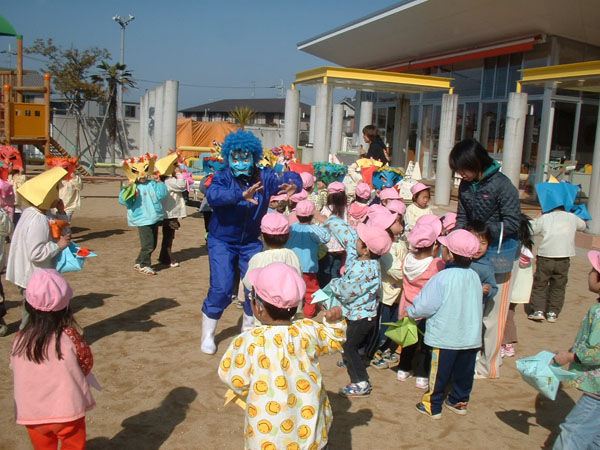 節分会が行われました。「泣いた赤鬼」の影絵を観たりダンスを踊ったり、楽しかったですね。お外に出るとなんと・・・赤鬼と青鬼がやってきました。ちょっぴり恐くって泣いてしまう子も・・・でも、しっかりと「おにはそと!」と、鬼を退治することができましたよ。きっと、子どもたちの心の中のわがまま鬼や泣き虫鬼もどこかに逃げていってくれたはず!?