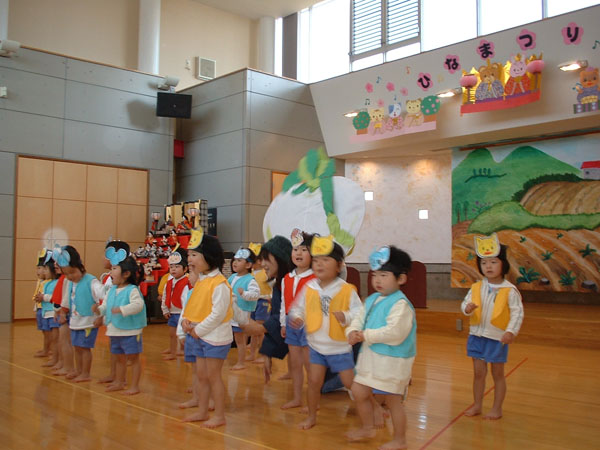たんぽぽぐみは「大きなかぶ」を発表しました。「うんとこしょ!どっこいしょ!」と力一杯の大きな声♪たんぽぽぐみさんらしい笑顔いっぱい元気モリモリの楽しい劇遊びでしたね。