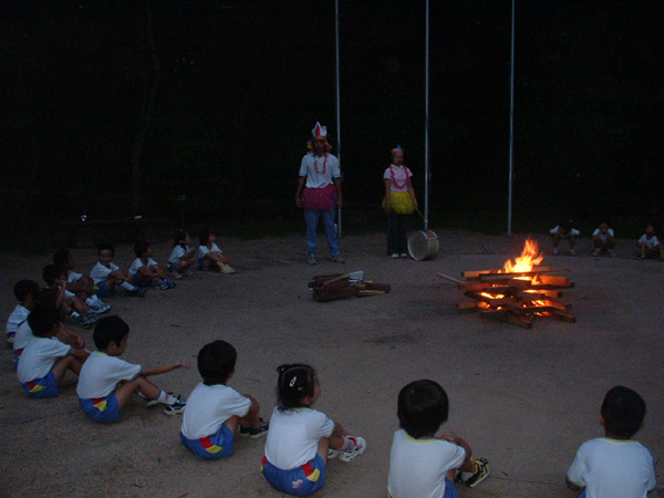 夜は、キャンプファイヤーで楽しいひとときを過ごしました。インディアンの登場に大喜び!!グループ毎のスタンツもおもしろかったです。とても貴重な体験をした子どもたち、楽しい2日間でしたね。いつまでも子どもたちの心に残る思い出となったことでしょう。