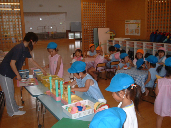 「いらっしゃいませー」「ご注文は?」とレストランごっこを楽しみました。お客さんになったり、コックさんになったり・・・