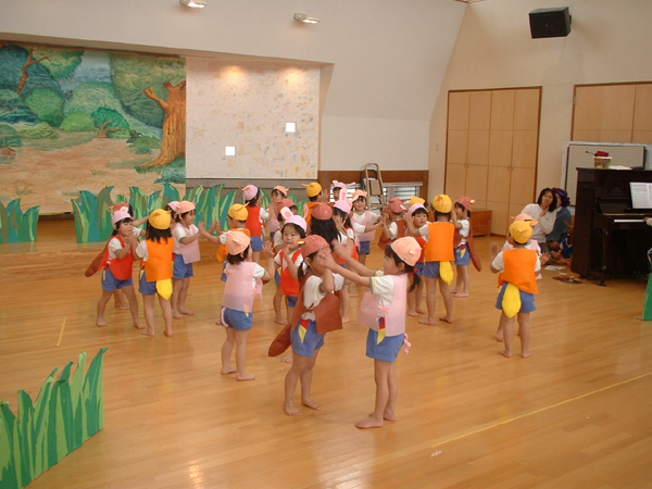 好奇心いっぱいで、楽しい事が大好きなちゅうりっぷぐみは、かわいいアヒルやうさぎに変身して、「ワクワクピクニック」の劇をしました。むっくりくまさんや大好きな体操をして、ニコニコの子どもたちでしたね。