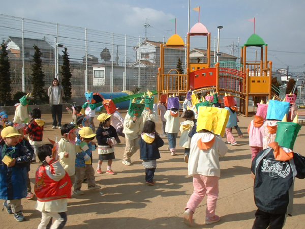 「おには〜そと!!ふくは〜うち!!」と豆まきをしました。泣き虫鬼やおこりんぼ鬼はどこかへ逃げていきましたね。