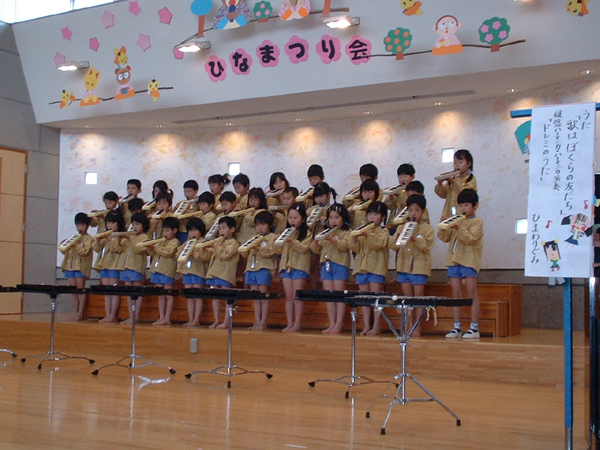 一年間の総まとめであるひなまつり会(生活発表会)で、合奏や劇遊びを発表しました。たくさんの人たちの前でドキドキ緊張でしたが、みんな自分の力をだしきって、がんばりました。