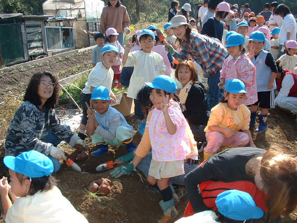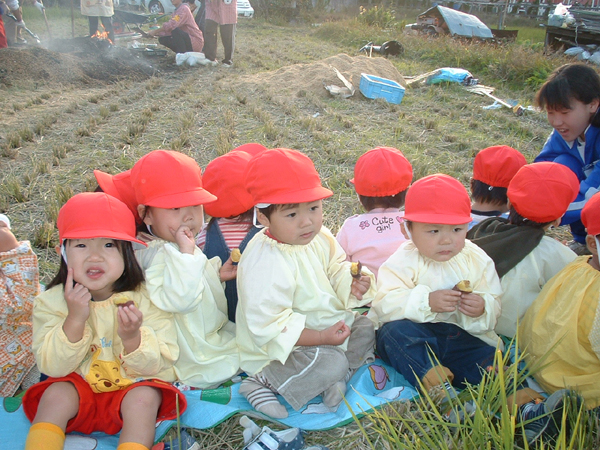 みんなでつるを植え、育ててきたお芋を一生懸命に掘りました。でぶいもちゃんにちびいもちゃん!たくさんのお芋がでてきたね。おみやげのお芋、お家ではどんな風にお料理して食べたのかな?お手伝い下さった保護者のみなさまご協力ありがとうございました。