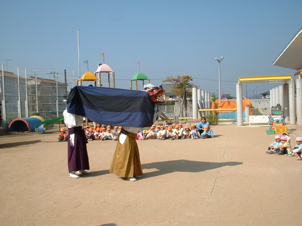 伊勢の獅子舞が、来年の無病息災を祈願して舞ってくれました。笛と太鼓に合わせた獅子舞の舞を、神妙な顔でじーっと見つめていた子どもたちでした。来年も元気いっぱいすごせますように・・・。