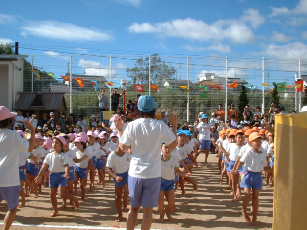 雨で延期に延期を重ねた運動会でしたが、当日は、秋晴れの中、元気よく・力一杯の演技・競技をみせてくれました。