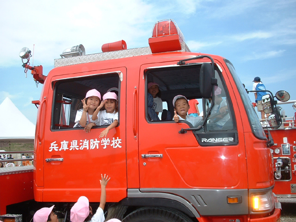 演技が終わった後は、見学に出かけました。消防車に乗ったり、ホースを使っての消火活動の経験をさせて頂き、とても楽しい時間を過ごしました(~o~)