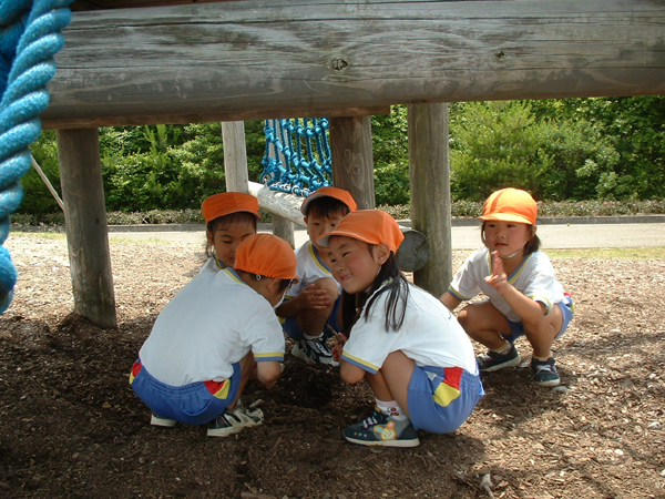 日陰に入ってかぶとむしの幼虫探し★なかなか見つかりません。幼虫はそうっとしててあげようね。