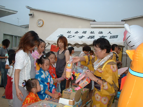 お家の人と一緒に夜店コーナーで遊んだよ!!夜の保育園はとても楽しかったよ!!