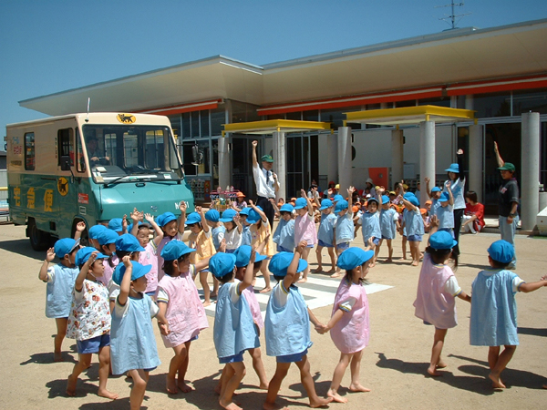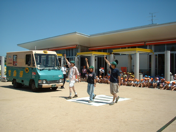クロネコヤマトの宅急便の方に交通ルールを教えて頂きました。車の周りで遊ぶと危ないこと。車の下に入らないこと。横断歩道の渡り方を覚えました!!交通ルールはしっかり守ることをみんなでお約束しました。