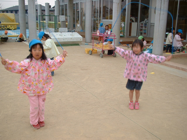 まえとび・うしろとび・片足とび・・・・・といろいろな跳び方に挑戦しています。今年のまえとびの最高記録は、325回!!さぁ、この記録をこえることができるかな?