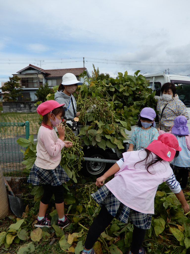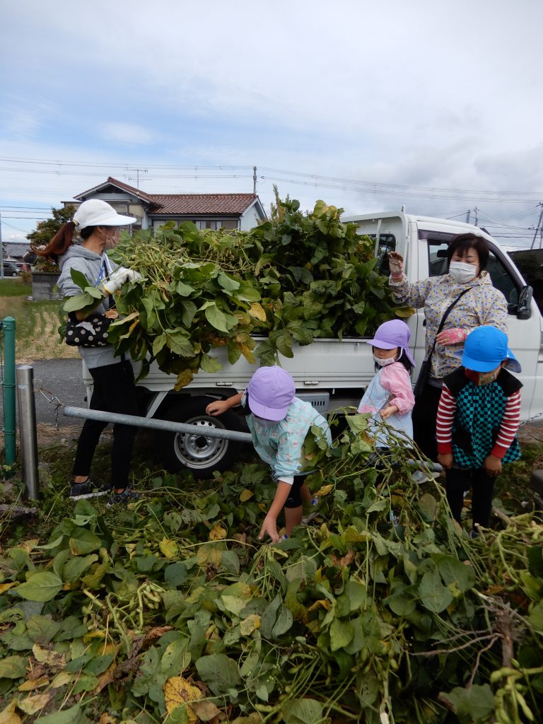 地域の方のご厚意で、枝豆の収穫に行きました。