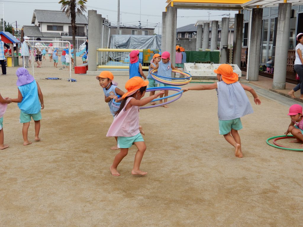 竹馬や一輪車、玉入れにかけっこ、フープやリレーと、色々な遊びに次々と挑戦しています。
