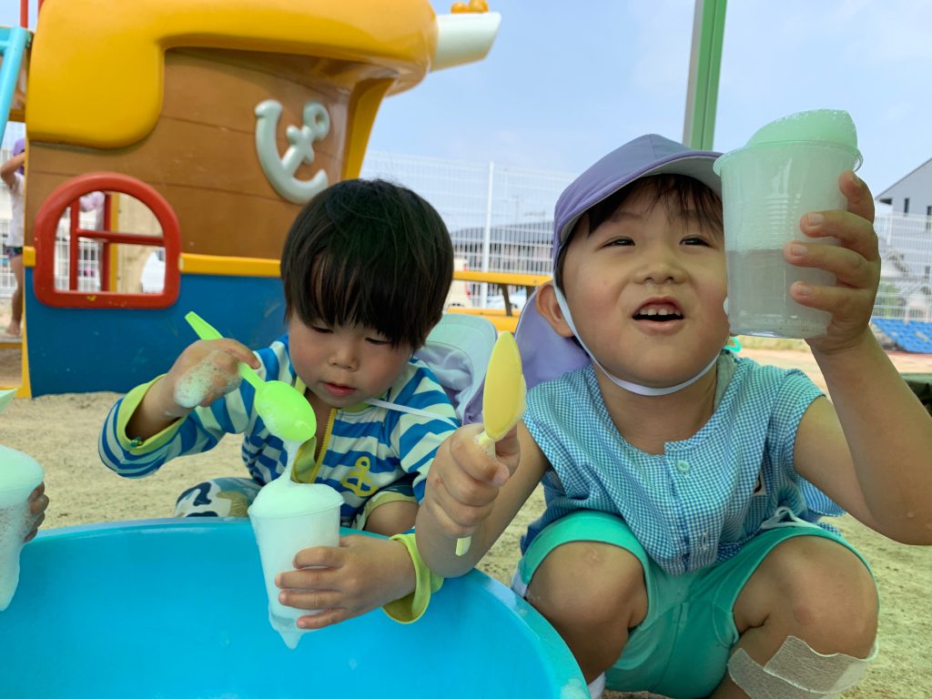 泡風呂や洗濯ごっこなど、泡遊びは子どもたちの大好きな遊びです。