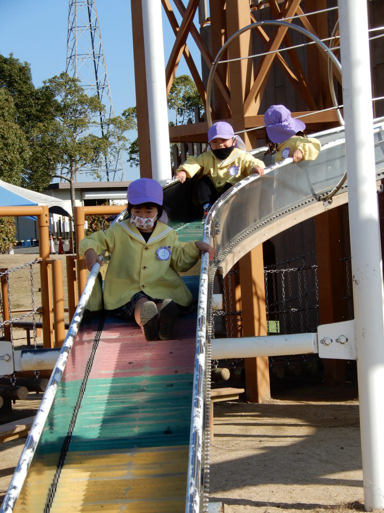 みんなで、ターザンの遊具やローラー滑り台に挑戦しました。