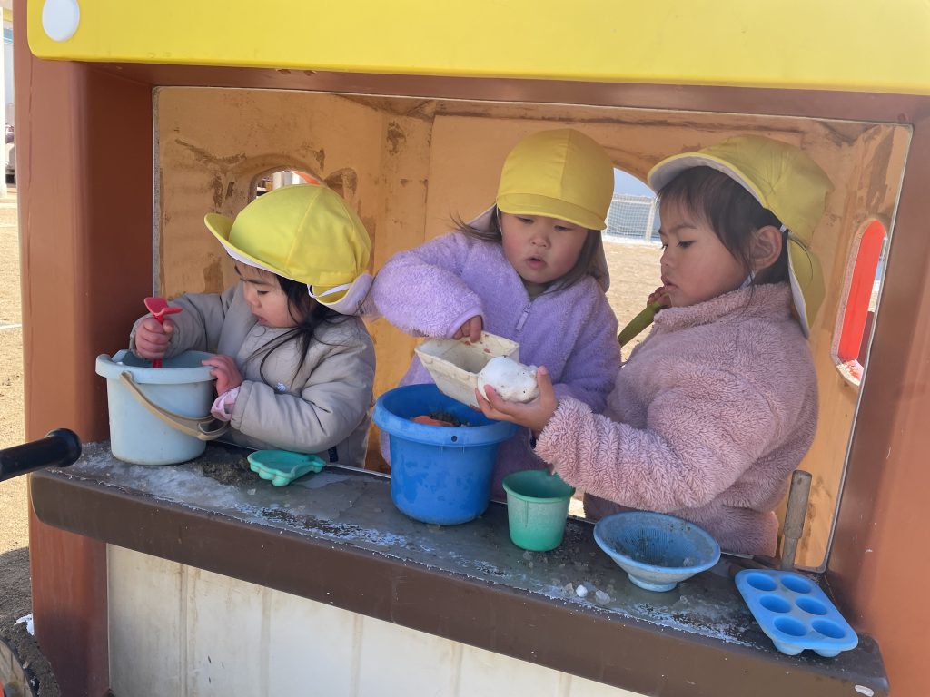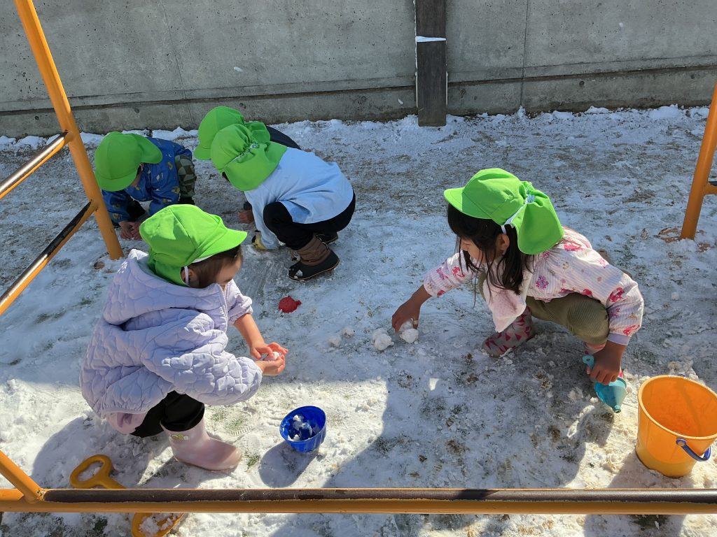 真っ白な園庭にワクワク・ドキドキの子どもたち。