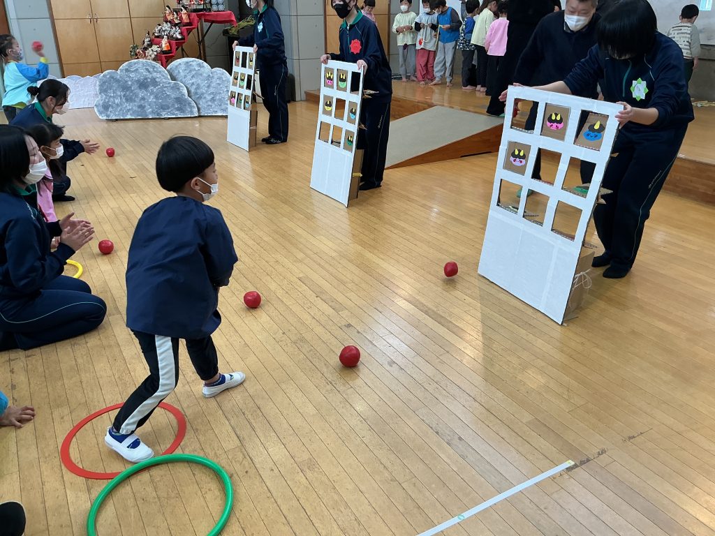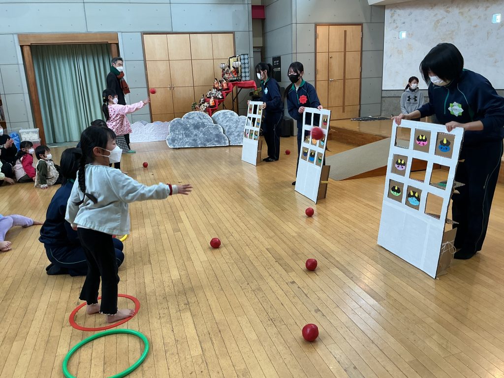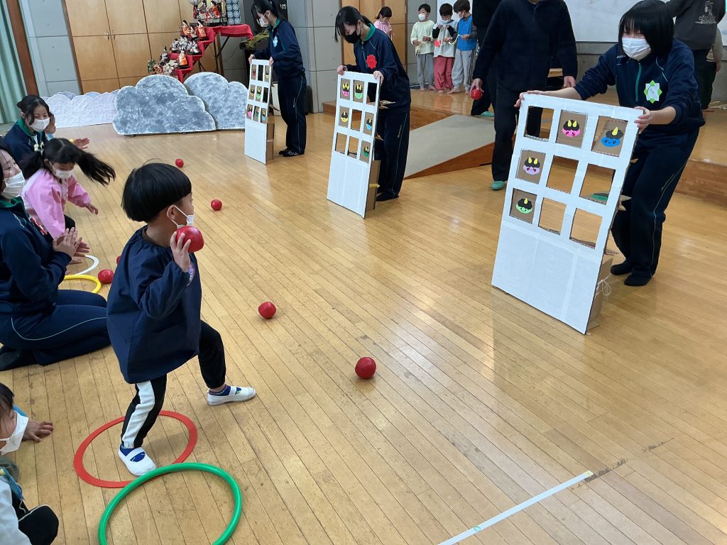 2月ということで、節分にちなみ鬼の絵がついた手作りのストラックアウトをさせていただきました。